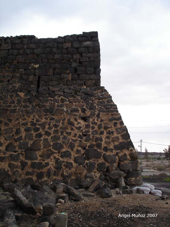 A 100 kilómetros al este de Ammán, en la ciudad oasis de Azraq encontramos un castillo construido en basalto negro. Este castillo fue cuartel general de Lawrence de Arabia durante la revuelta árabe. Detalle curioso del lienzo de la muralla.