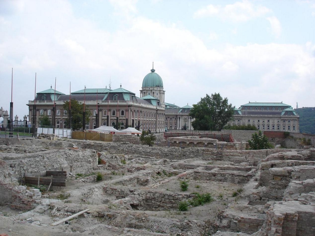 Vista del Budavári Palota junto a los restos de la antigua Fortaleza del Castillo.