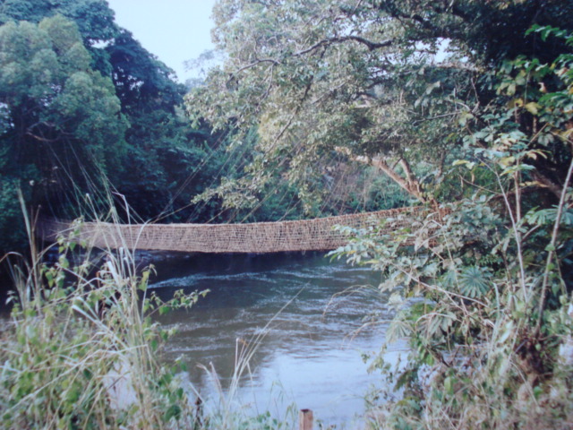 PUENTE DE LIANAS ECHO POR LOS PIGMEOS QUE CRUZA UNAS CATARATAS. FASCINANTE EL CRUZARLO.