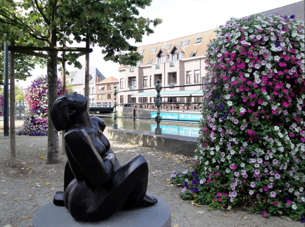 Estatuas y flores en el canal Haverwerf.