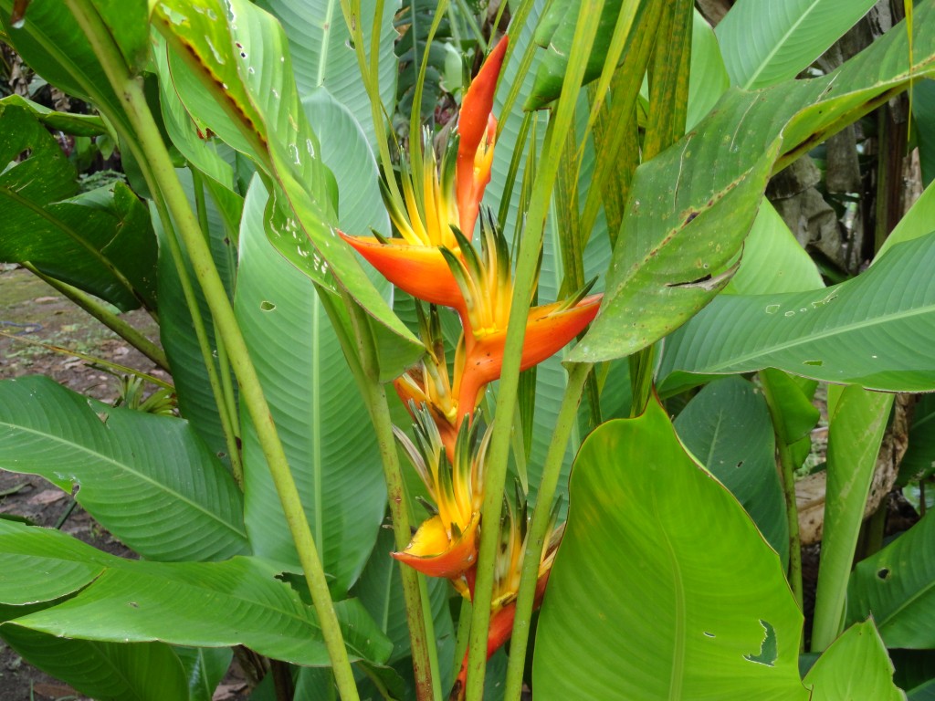 Una de las variedades de heliconias que posee el complejo acuático aventura amazónica, las mismas que se las admira por doquier de diferentes tamaños y colores, dando un aspecto de paz y de confianza al turista que lo visita, saliendo de allí con ánimos de ser mejores cada día.