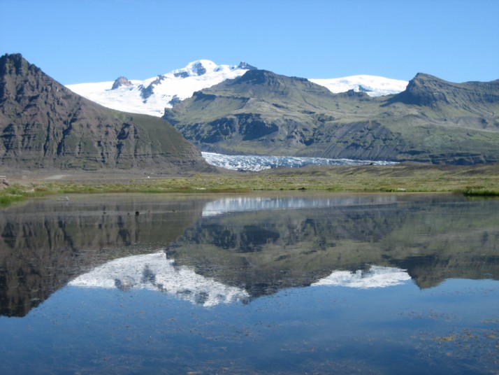 Paisaje con lago. Al fondo el glaciar Svínafellsjökull