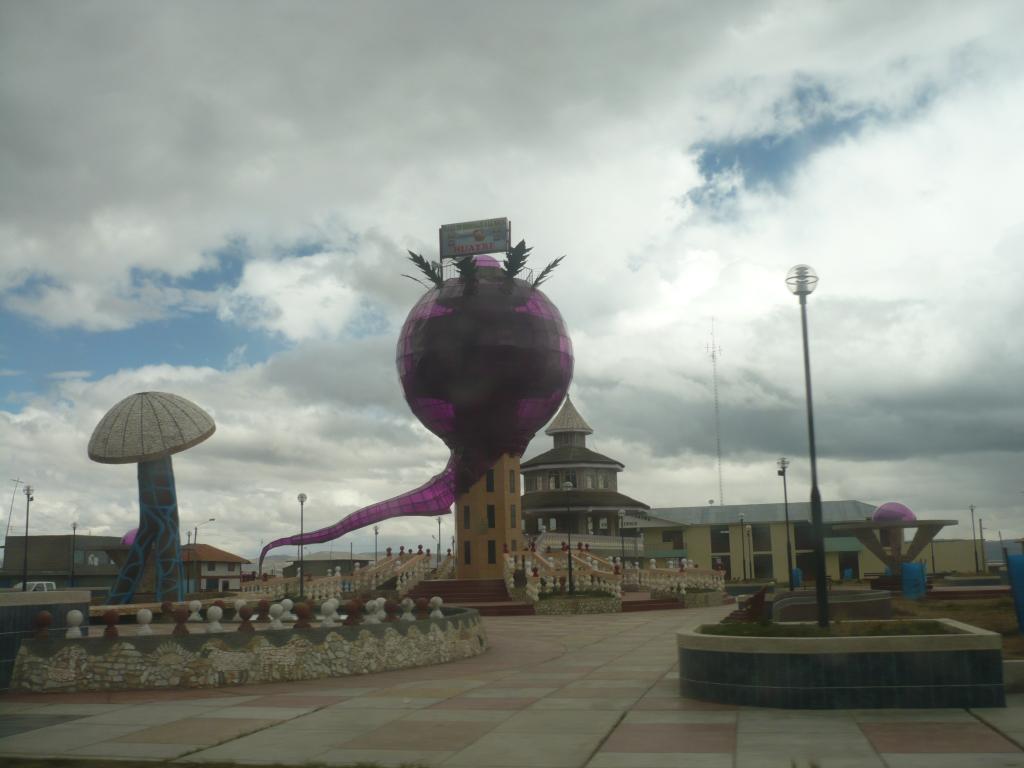 Es en el parque del distrito de Huayre es una replica de una MACA gigante
