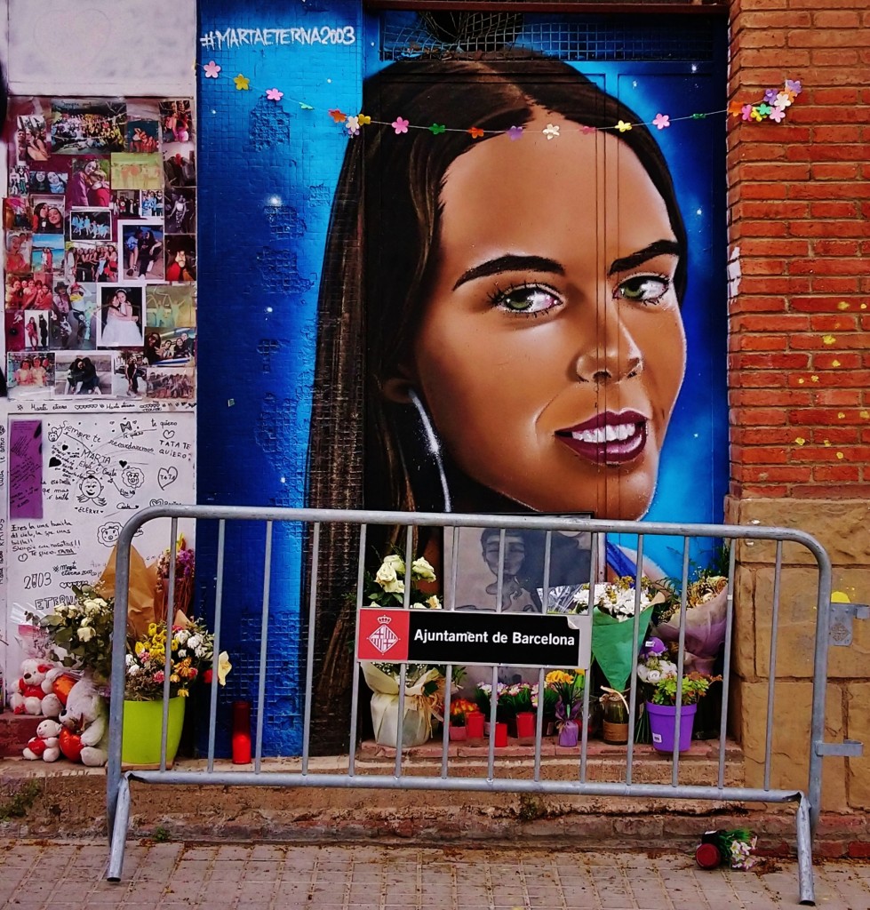 Homenaje a una chica llamada Marta, en el Carrer Pallars, barrio del Poblenou.