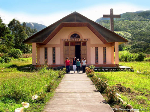 arco iris y la iglesia de oxapampa ,todo la iglesia de madera ...