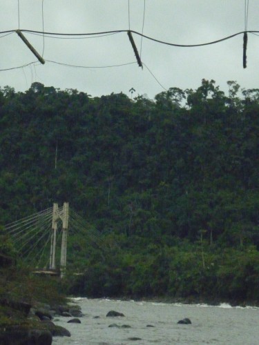 Vista de las rocas a orillas del rio Pastaza, desde el lugar donde funcionaba el puente colgante, un rio que acarre muchas historias empezando en las provincia de Chimborazo y Tungurahua, para desembocar en el al Amazonas.