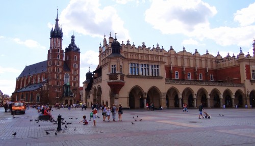 En esta enorme plaza destaca la Lonja de los Paños (en polaco: "Sukiennice"), edificio renacentista que reúne elementos arquitectónicos de épocas muy diferentes, constituyendo una síntesis global de la arquitectura de la ciudad.