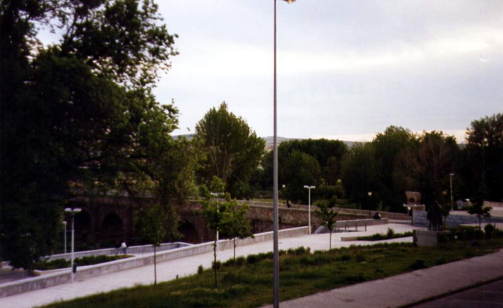 Vista de la ribera del Tormes, con el puente romano y el Berraco al fondo.