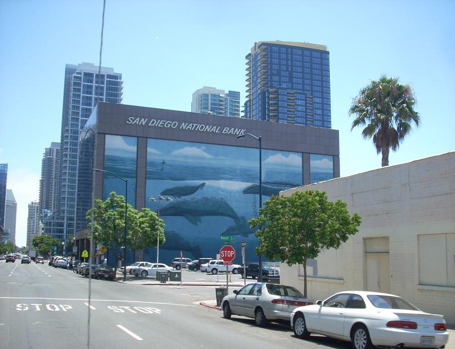 GRAN PINTURA EN EL CENTRO DE SAN DIEGO RELACIONADO A LAS BALLENAS, CUIDEMOSLAS