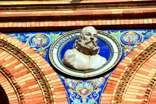 Foto: Cervantes su busto representado en la Plaza de España sevillana - Sevilla, España