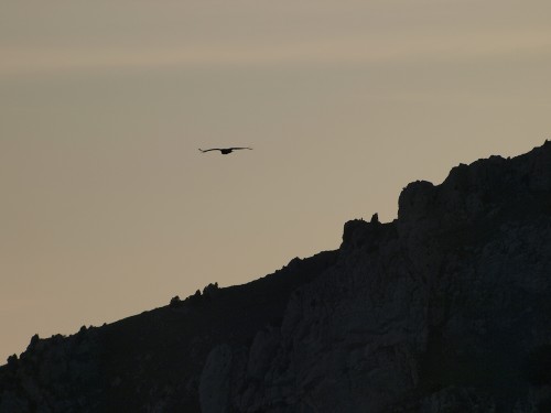 Foto: Buitre planeando sobre la sierra en el ocaso - Pancorbo, España