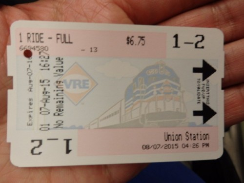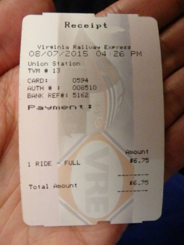Foto: ticket de la compra del boleto del tren VRE (Virginia Railway Express) - Washington, Estados Unidos